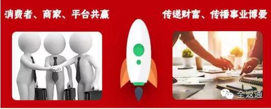 全返通平台每天以千分之一依次递减的返利速度,消费者进行消费,商家将消费的百分之十五交于平台,平台再将利润以百分之百返还给消费者,以百分之十返还给商家,达到三家共赢的目的。其中,消费者得到全返利益,将利益传播扩大,得到分享费5%及更多的提成;商家客户增多,生意兴旺。跨行业赚钱,零成本经营;平台公司更是拥有庞大的资金流,模式运作将带来资金沉淀,会员增多,广告费,网络平台上市价值等。