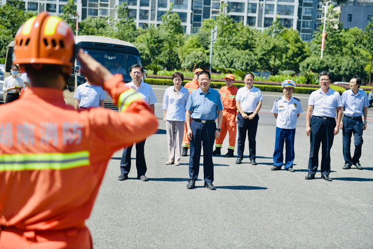 8月1日,副省长、省防指常务副总指挥陈飞来岳检查防汛救灾工作,并代表省人民政府和省防汛抗旱指挥部,对奋战在抗洪救灾一线的武警官兵、消防救援指战员、民兵及其他防汛抢险救援队伍致以节日祝福和亲切问候。市委书记王一鸥,市委副书记、市长李爱武,市委副书记陈爱林,岳阳军分区司令员周隽,市政协副主席刘铁健,市政府秘书长刘传汉参加。