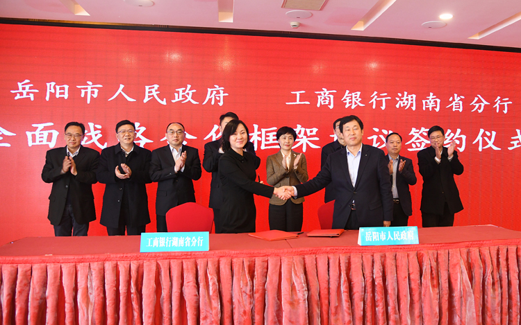近年来,市政府与工商银行湖南省分行不断深化合作,双方在重点项目、重大产业、基础设施建设、城乡一体化、乡村振兴、外向型经济等多个领域开展了广泛合作,取得了丰硕成果。近3年,工商银行岳阳分行累计向岳阳发放企业法人类贷款243.31亿元,为岳阳高质量发展贡献了金融力量。未来3年,工商银行湖南省分行还计划向岳阳投放不低于300亿元的资金总量。