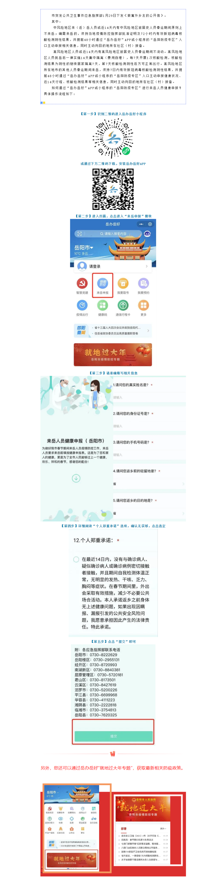 速看!岳阳市“防疫六条”——“岳办岳好”来(返)岳健康申报操作指南